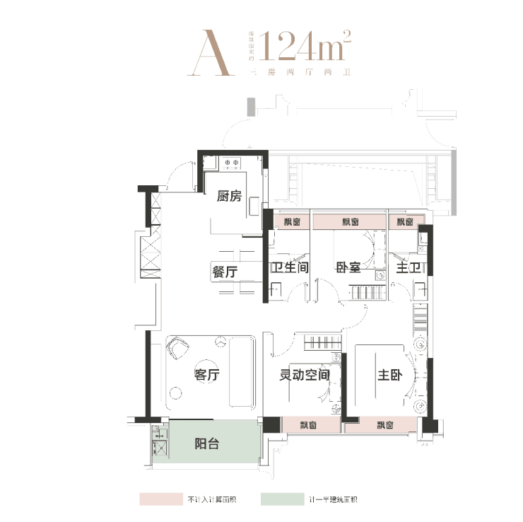 约124㎡内环神级改善户型,舒适平权三房,主次卧享阔尺人生