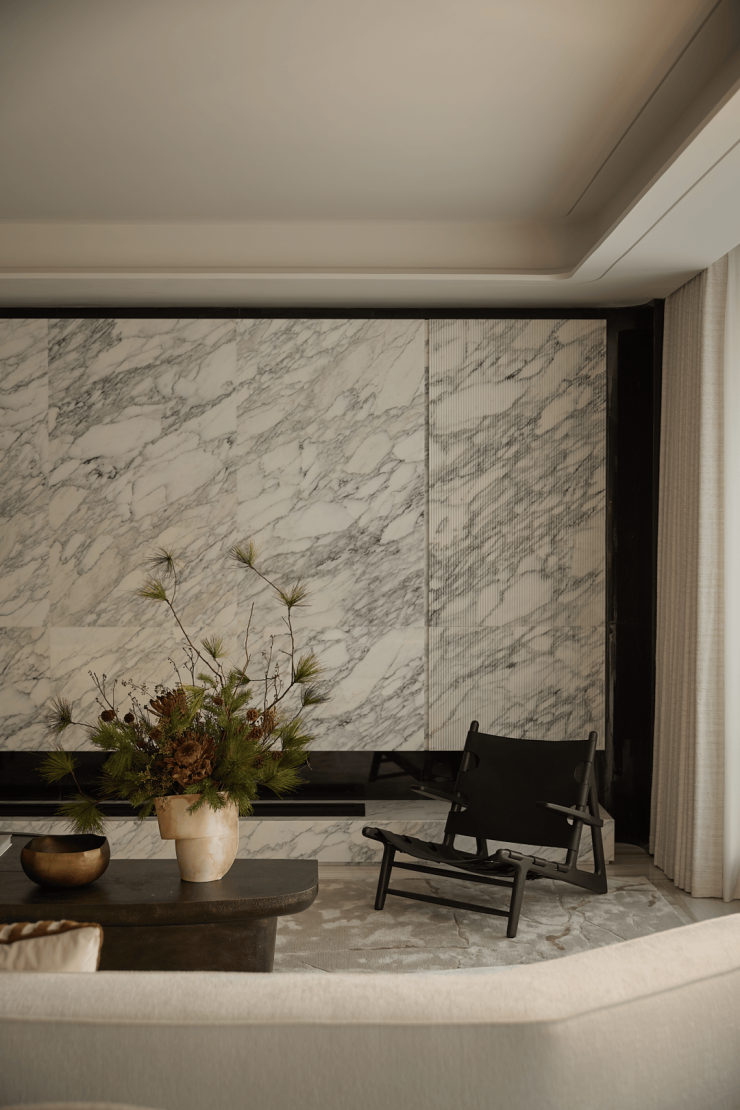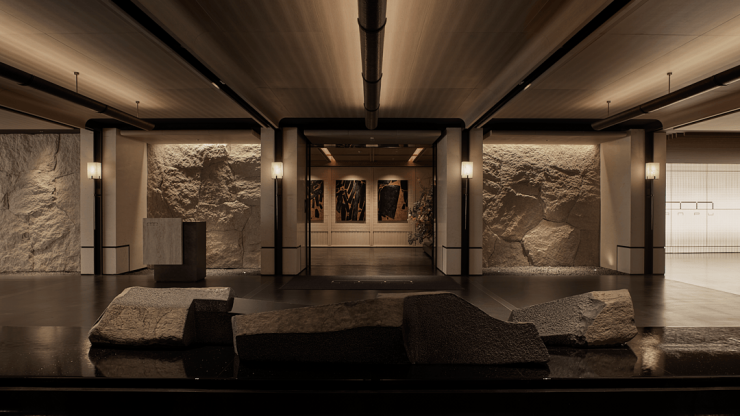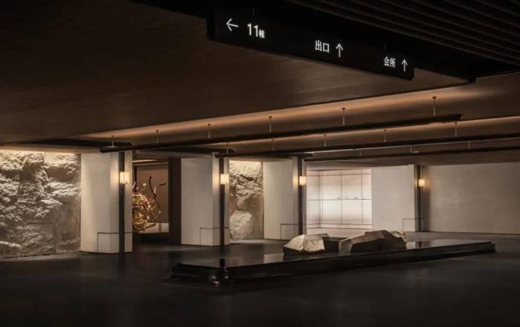 从建筑立面开始,安璞便展现出高超的审美追求: 铝板、陶砖和石材巧妙融合,既保持现代线条的轻盈感,又借助陶材的温润光泽与石材的沉稳质感,构建出富有层次的艺术表达。