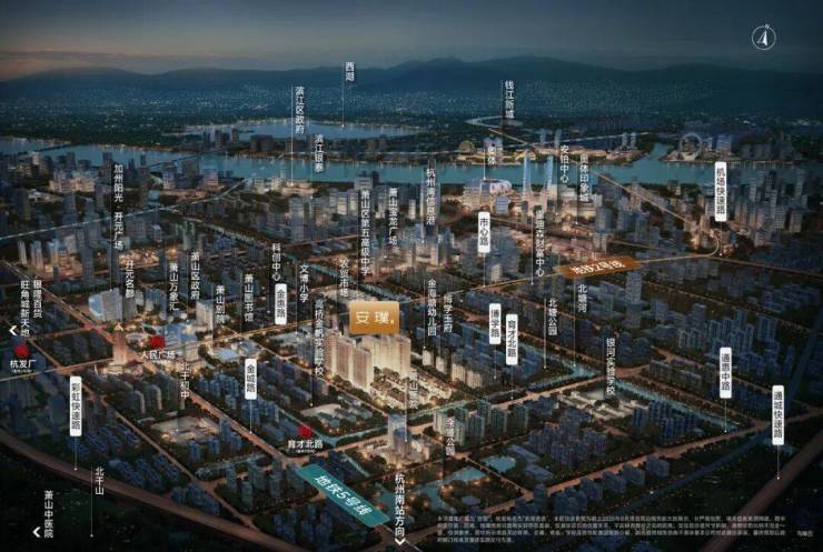 项目坐落于萧山北干核芯, 区政府板块(萧山区政府所在地),市心路与金城路“ 黄金十字轴”交汇处,距 地铁5号线育才北路站约500米,地铁2号线 人民广场站约800米,彩虹快速路、通城高架、机场高架、风情快速路,纵横环绕,轻松通达全城