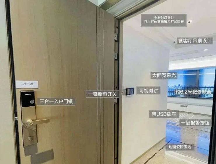 全龄关怀的安全守护: 从支持密码、指纹、钥匙三合一开锁的智能门锁,到卫生间、卧室的一键报警系统;从厨房卫浴的防潮溅插座,到全屋一键断电开关,安全防护贯穿于每个生活场景,细致关照老人与孩童。