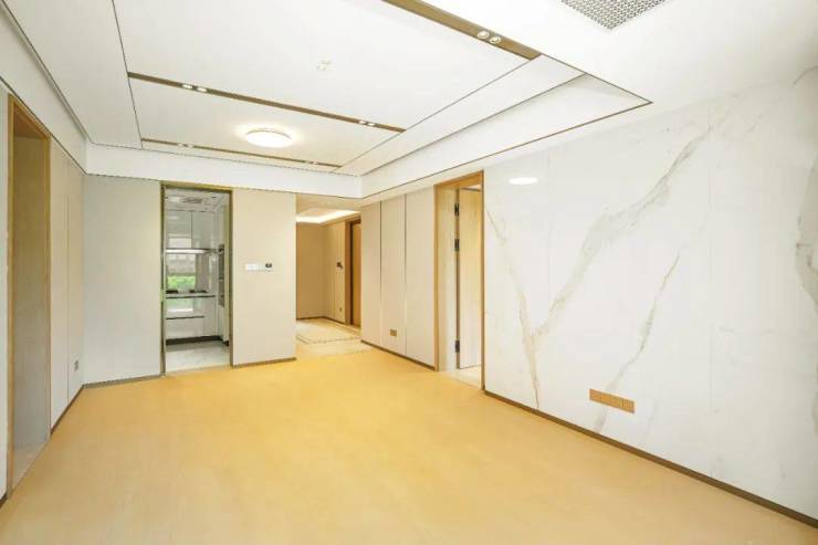细节方面,项目采用了 拉米娜 的进口电视背景墙、顶级奢侈品牌 卡莉斯塔 的主卫龙头、 ABB 的智能化控制、 LG 的厨房台面,甚至是阳台的 电动晾衣架、水槽、吊柜都是交付标准。