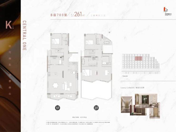 项目涵盖办公、住宅、商业三种业态,包含一栋办公楼、一栋住宅楼及配套底商。住宅楼采用退台设计,可享陆家嘴三件套景观视野。项目共有27套3-4房户型(部分为复式),面积段建面约109-261㎡。