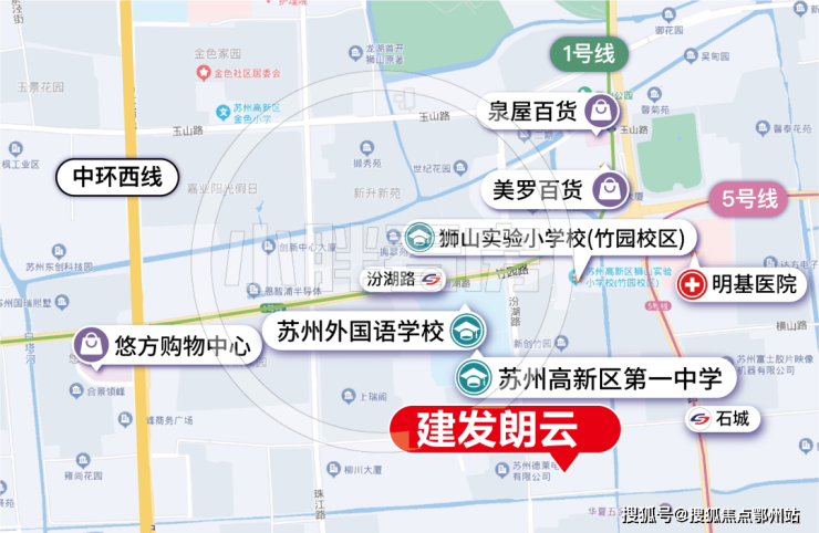商业配套上比较近则是木渎悠方、美罗和泉屋,同时距离龙湖狮山天街、金鹰国际广场、绿宝广场等也均不远。