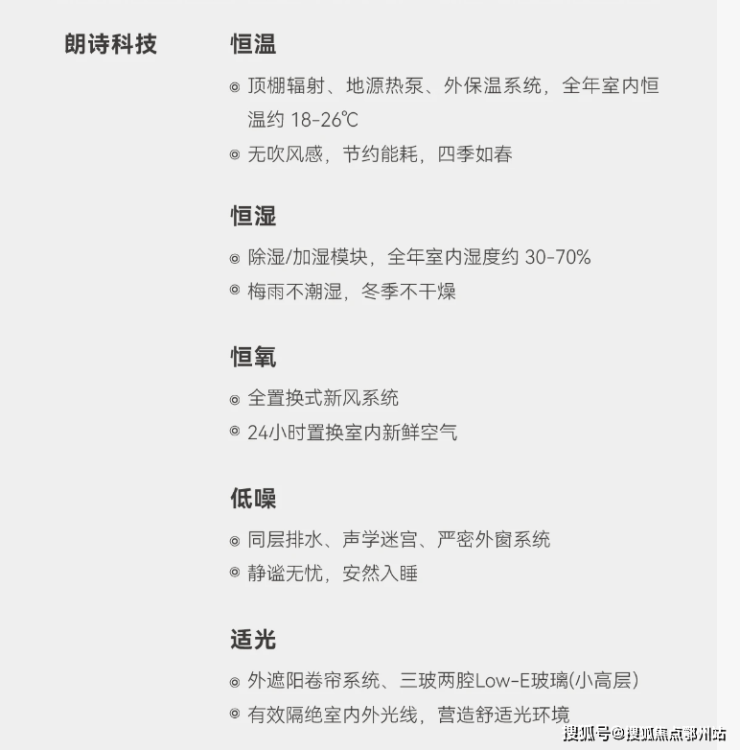 24小时全置换式新风系统,实现约1-2小时实现全屋空气置换,无需开窗,畅享清新空气;运用加湿/除湿模块保持室内约30-70%适宜湿度; 应用严密外窗系统、同层排水系统及声学迷宫,带来舒适静谧的生活体验。