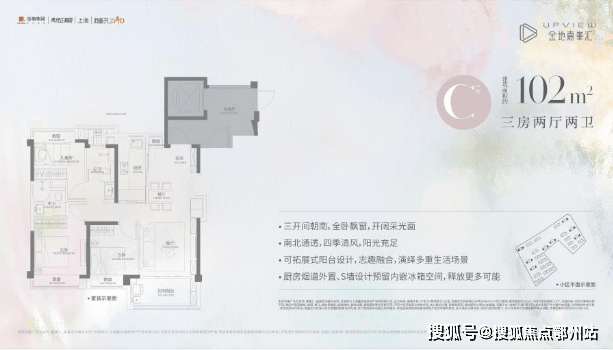 高层:建面约102㎡(3房2厅2卫)