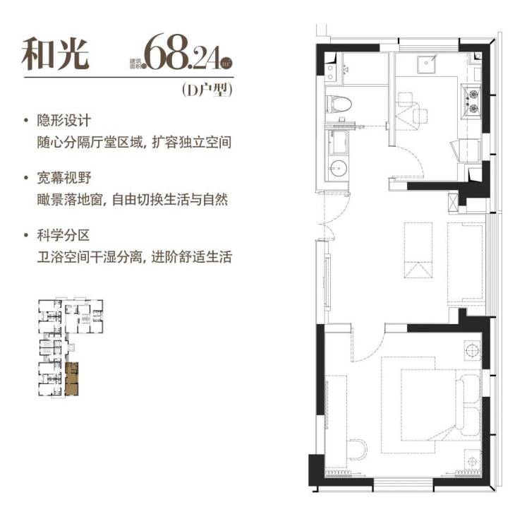 D|和光|建面约68.24m²|一室一厅一厨一卫