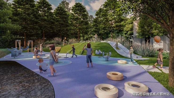 在活动大草坪上互动,其中 有专属儿童乐园,景观中还保留了一些休闲平台和户外凉亭可供家长看护孩子 ,打造住宅花园城市中的平静绿洲,塑造与大自然的互动体验。