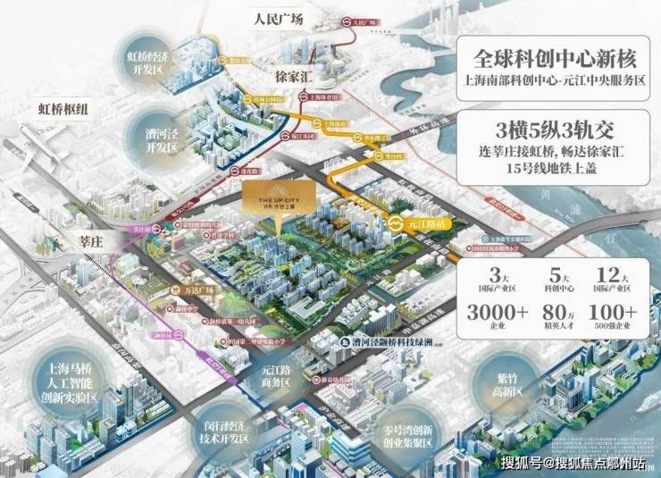 保利·光合上城位于闵行主城颛桥板块,北接国家级科学园区漕河泾和徐汇新晋高水平科学策源地华泾,南接国家级科学园区紫竹和大零号湾创新创业集聚区。本身就占据了南上海科创产业的 极核位置!