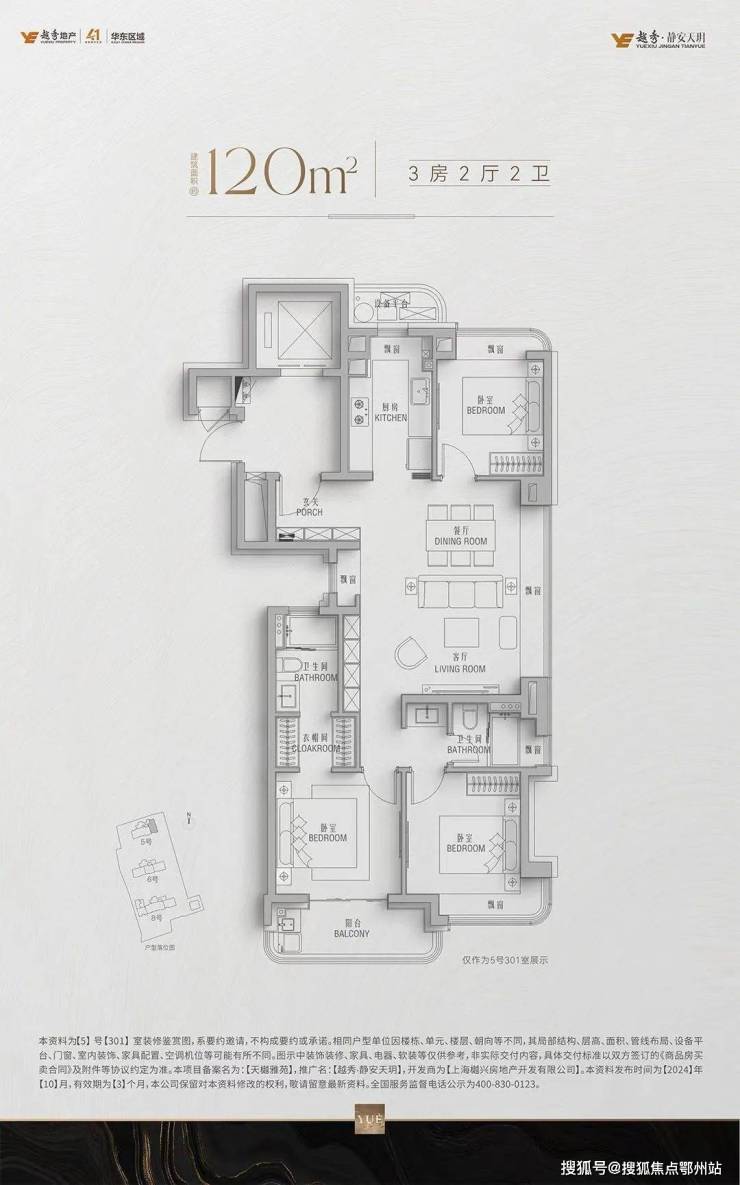 120㎡户型同样沿用142㎡户型的高端配置, 类一梯一户,私享电梯厅空间;正三房空间尺度,适应全龄家庭居住需求; 约3.8M一体化主厅,以直通进深约1.6米阔景阳台,形成一个纵向舒适的大场域,自由朗轩尺度,肆意享受阳光的温暖和海风拂面的凉爽; 峯范套房主卧,配置飘窗拓展空间; 约4.5㎡独立卫生间,干湿三分离空间,人性化细节考究,再次让所有人感受到了静安天玥的静奢主义美学。