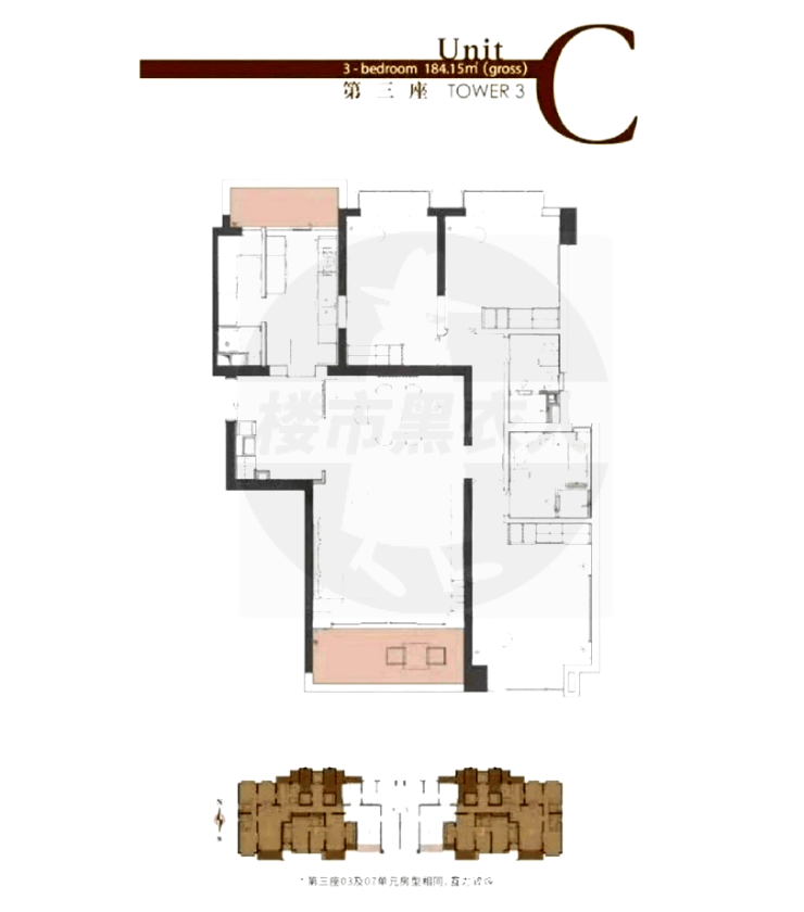 3号楼户型:134㎡2房,184㎡/200㎡3房;