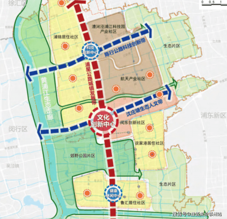 在2035规划中将浦江镇定义为闵行中心城区,打造“一廊三带三心”空间布局,依托得天独厚的生态资源及完善配套定义为“生态宜居板块”以及生态创新研发服务中心。