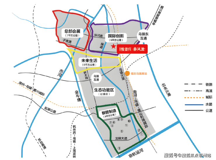 项目紧邻乌镇新客站及乌镇南站,随着南站设立,交通提速、板块崛起,未来将承接上千万游客和海量高新技术人才。