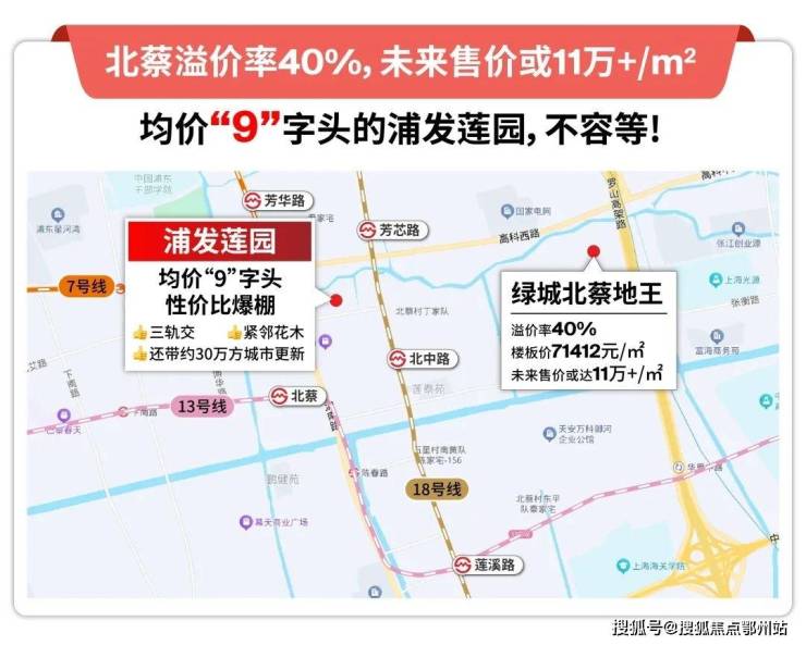 第二,北蔡绿城地王溢价约40%,未来预期售价约11万/㎡,这大大 加剧了浦发莲园”9“字头入手的紧迫性。
