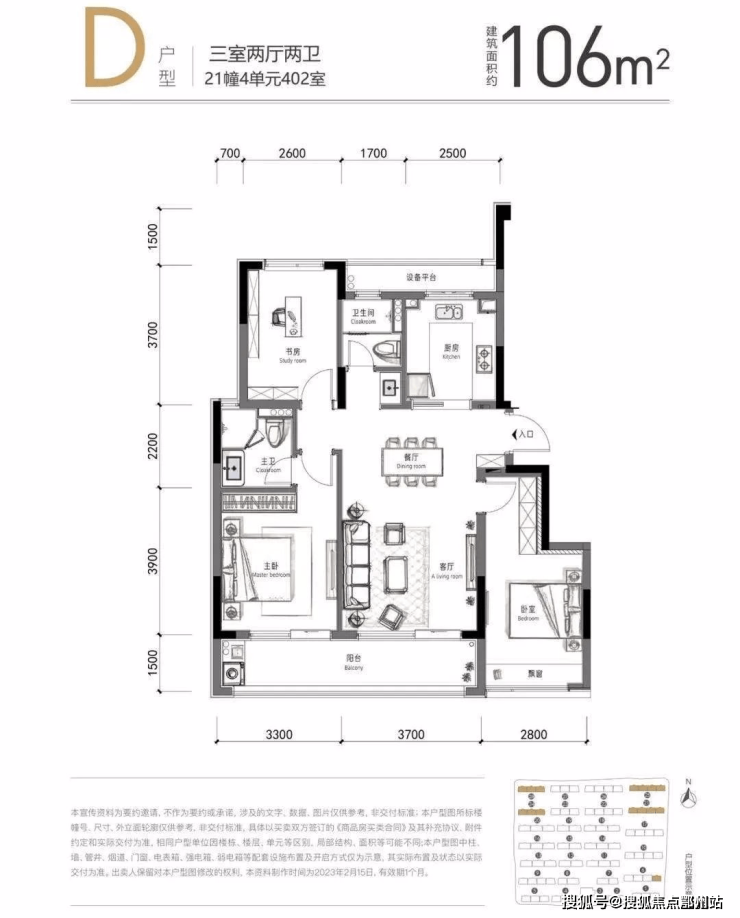 约106㎡的3房2卫户型,总价可控制在200万出头。