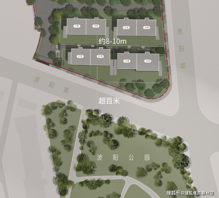 2、约10米Max楼距,尊享私密空间;头排超百米,后排约8-10米楼距,断层级尺度