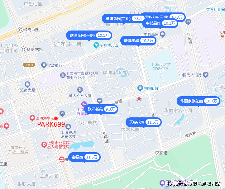 项目周边的品质二手房还是比较多的,其中御景园和天安花园离世纪公园最近,也是是挂牌价最高的两个项目,整体的挂牌价约11.5-11.6万/㎡。