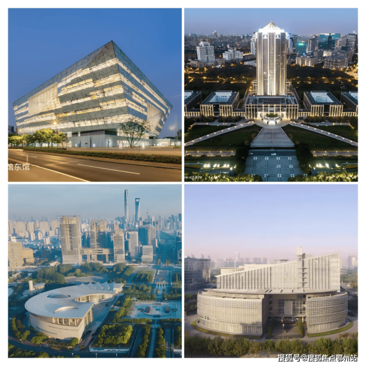 丁香路两侧(由近及远):浦东新区人民检察院、浦东新区人民法院、上海东方艺术中心、上海博物馆(东馆)……