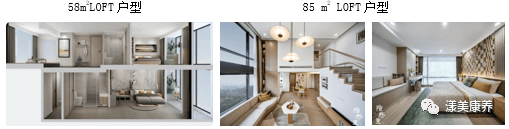 LOFT公寓层高为4.78m,面积段在56m2-163m2,采用双钥匙模式,上下层分别作了厨房和卫生间,适合两代人居住,相互照应;或能满足孙辈短期居住的长者家庭;或一层用于居住、一层用于出租,带给客户更多的生活方式选择。