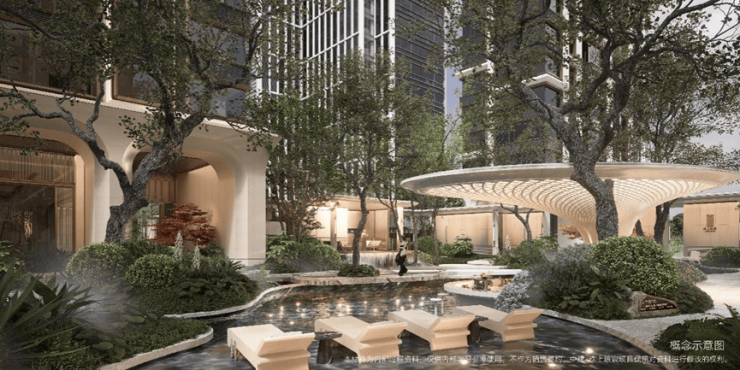 打造多重立体景观,构建悬瀑石涧的城市山林,结合多维的城市立体化空间,纳尽东方风雅逸趣。