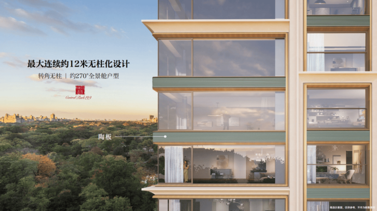 颠覆传统户型格局,打造最大连续约 12 米无柱化设计与约 270°转角无柱视野,全方位观赏自然与繁华的城市全景。结合一体化方厅,系统收纳,超大面宽,创造舒适居住体验。