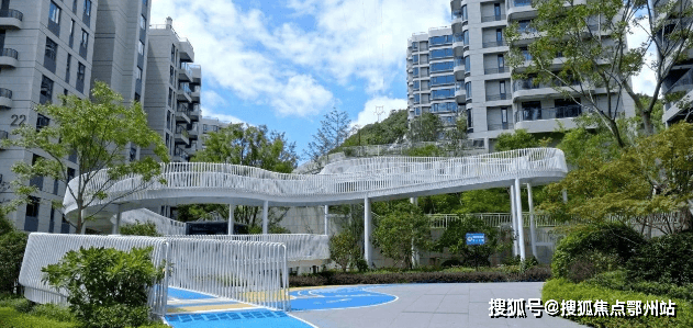 🌟“空中云连廊”:利用自然山体坡地的高差,打造约727米的空中连廊景观,从园区主入口处乘坐电梯即可直达连廊,既可以满足山体间的高差衔接,也可以满足全程无台阶的归家体验,让归家成为一场穿越在空中花园的旅行。