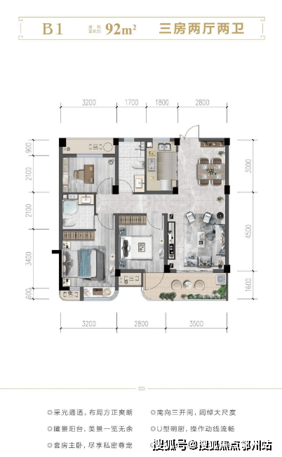🌟户型细节:瞰景阳台的转角皆优化为圆弧形设计,不仅体现了柔和的美感、也进一步提升了产品独特品质感。