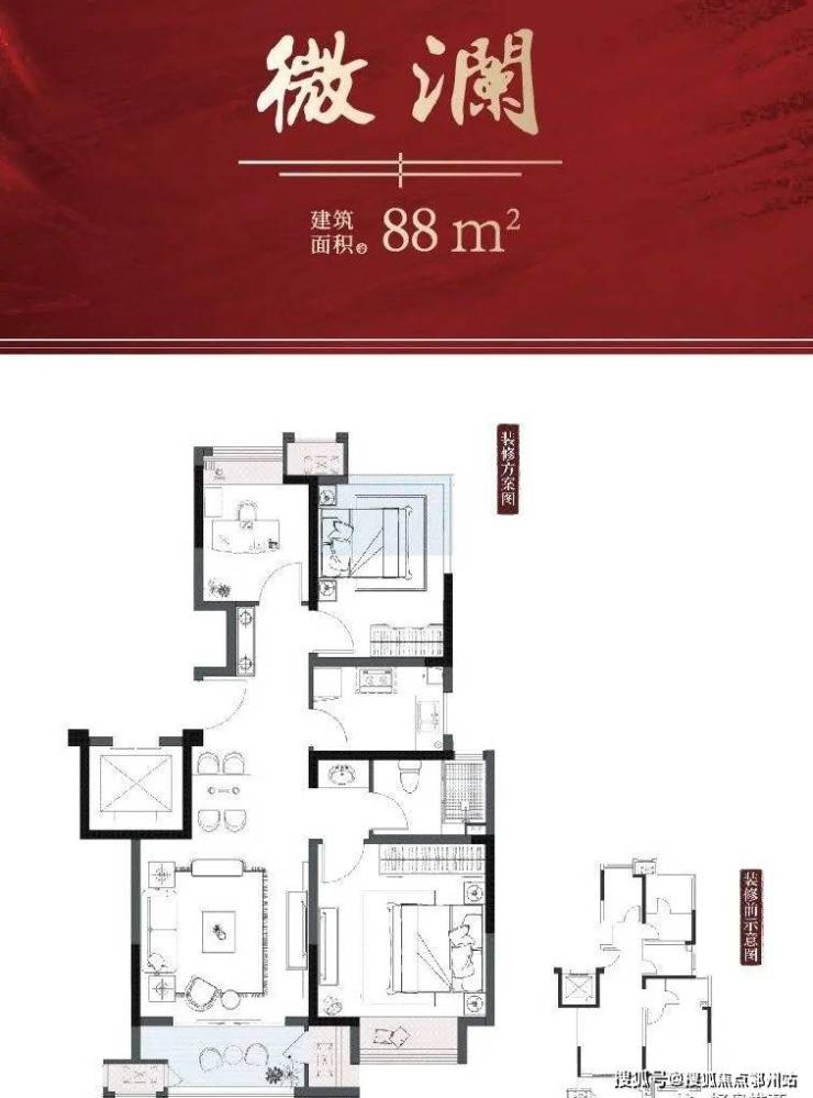 建面 88-108㎡三居室(得房率83%-87%)