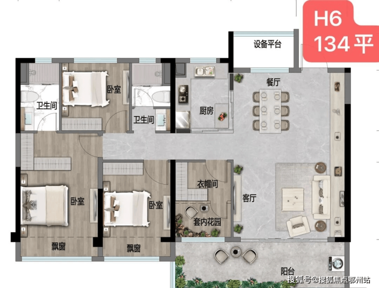 建面约120㎡户型 ,适合预算更充足的首置人群。
