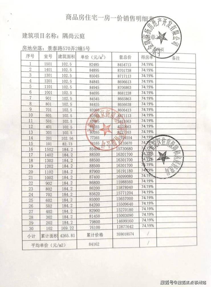 一房一价表如下: