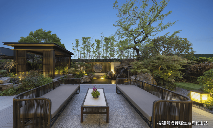 以水、山、石、植相结合打造而成,建筑与水池相互呼应,虚实相间,儒雅气质舒散开来,自然禅意之感油然而生。