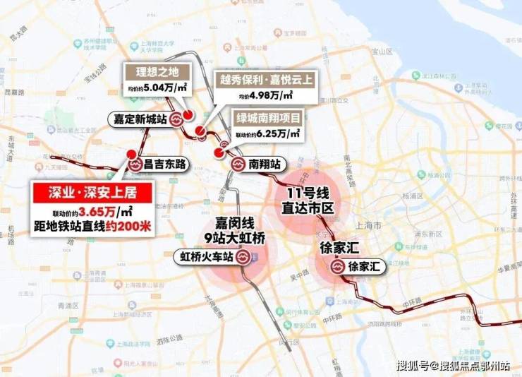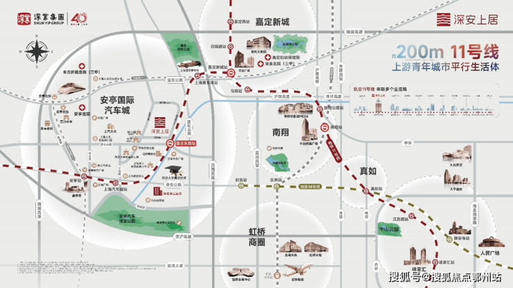 【深业·深安上居】与11号线昌吉东路站直线距离约200米,2站即可直达嘉定新城,4站南翔印象城,11站真如副中心、17站徐家汇!