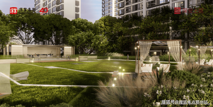 深安上居打造约12万方的、“景观与人居无界”、“多元生活无界”的城市平行生活体。一轴一心三主题的景观动线,感受层层递进的自然仪式感。每一棵绿植、每一片花丛都被细心设计,既有视觉上的美感,也营造出亲近自然的归家氛围。