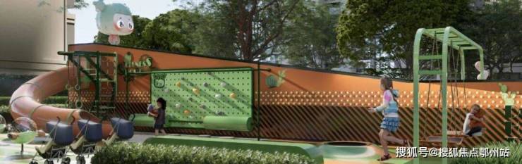 约2000㎡的亲子设计场是父母的心头爱。孩子在游戏功能环中尽情探索,追逐童年的乐趣;父母则在看护环中,享受片刻闲暇,既放心又舒心。这里不仅是家庭欢乐的亲密场域,更是邻里友好互动的社交场,时常能见到妈妈们聊育儿心得,爸爸们约好下一场球赛的画面。
