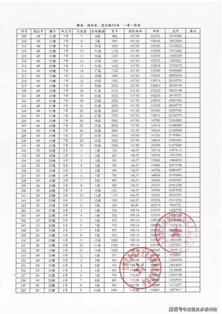 附6套房源一房一价表