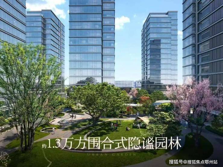 整个园区以围合式布局展开,七幢建筑借鉴中国古典园林的精髓,最大楼间距达到了63米,使得每栋楼都能享受到270°的开阔视野,
