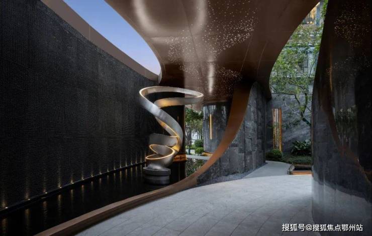 凤咏朝阳的北入口都很讲究,就像下一秒要拥人入怀的臂展——凤咏朝阳用浓烈的仪式感打造了两大主入口,用的都是星级酒店的做法,