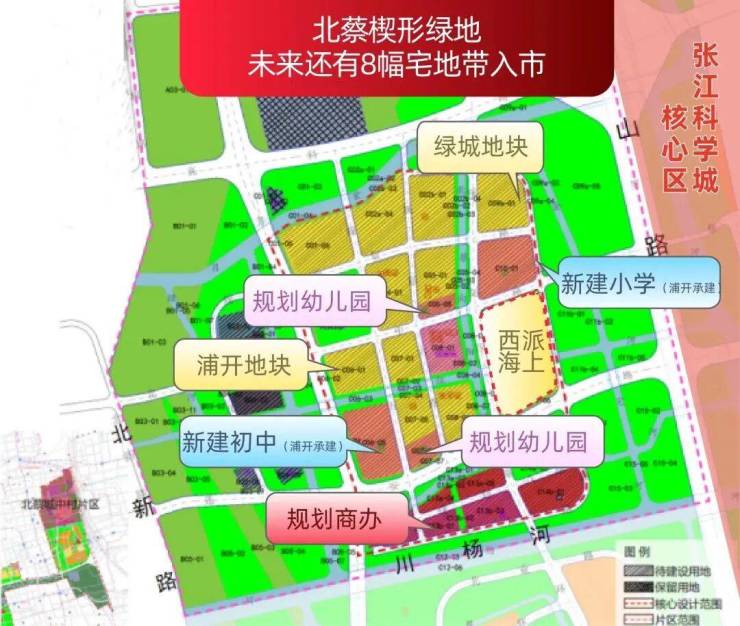 值得一提的是,该地块所处的北蔡楔形绿地,是上海2035总规明确的10片楔形绿地之一,占地面积约11平方公里,相当于7.5个世纪公园,是上海市中心城范围内浦东地区的重要生态支点。生态宜居是该地块一大特色。