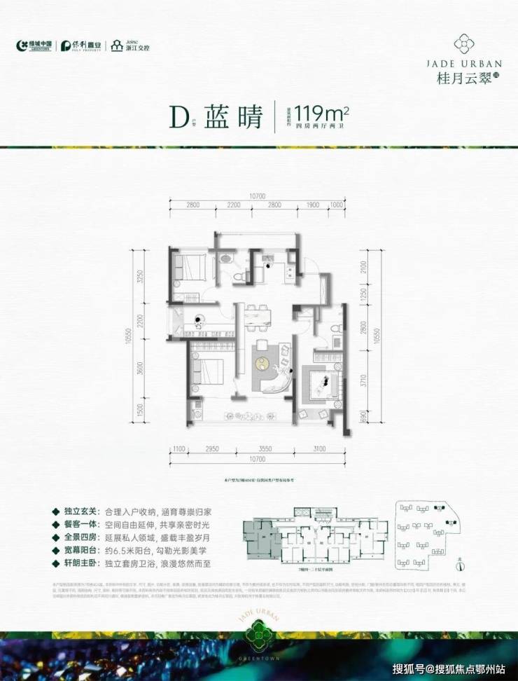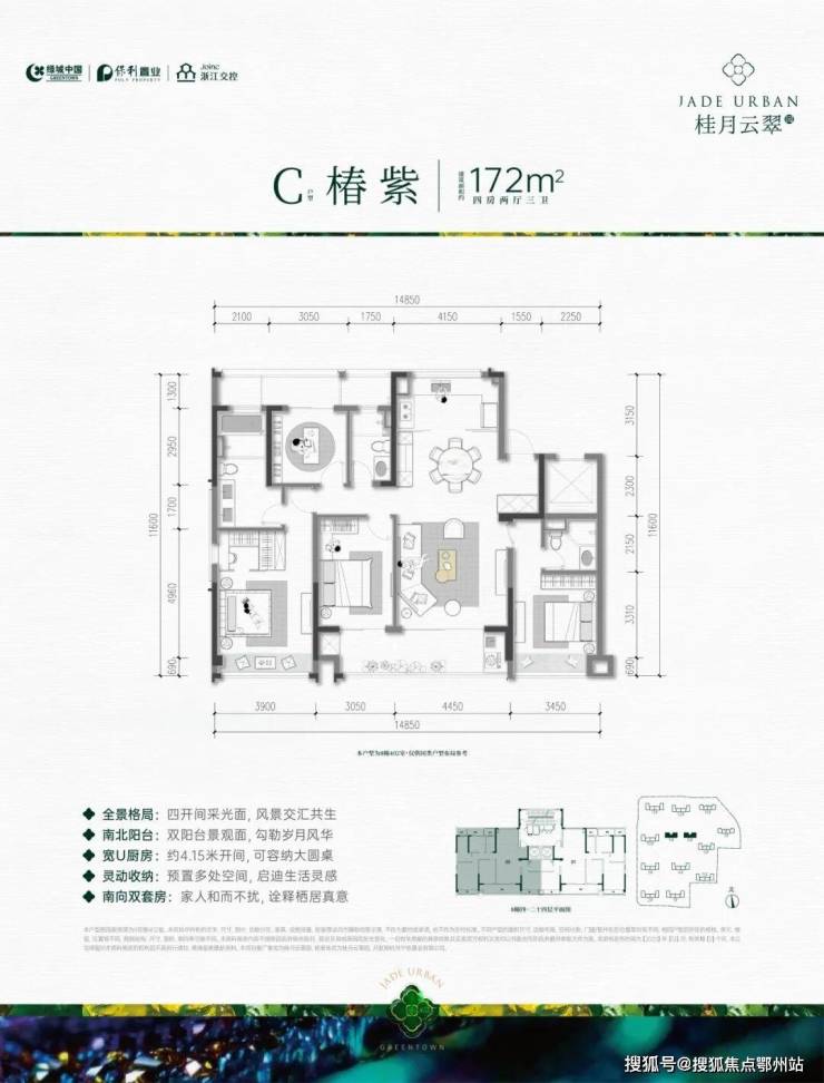 绿地率: 35%, 可售: 1130户, 面积: 建面约98㎡、110㎡、119㎡、139㎡、172㎡,