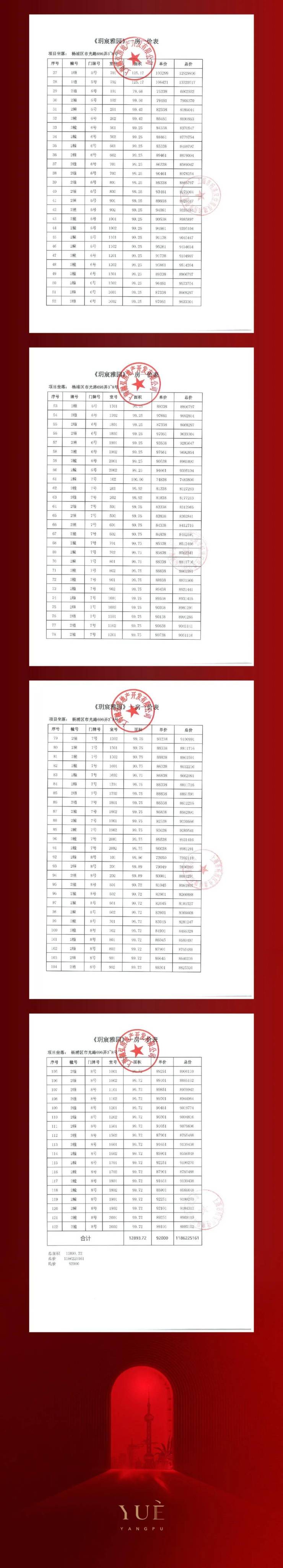 一房一价表及认购细则如下