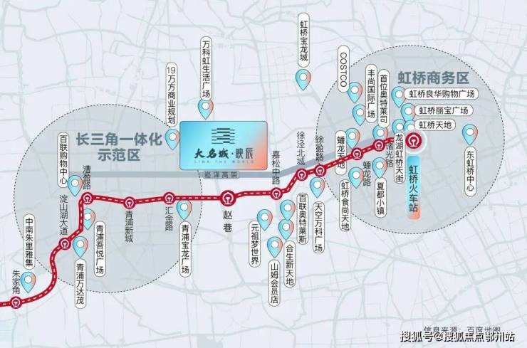 上海境内的上海示范区线串联虹桥国际枢纽、青浦新城、华为研发基地、长三角演艺中心、美的全球创新园区、西虹桥科创中心、安踏全球零售总部等多个产业高地,以后从大名城映辰出发,刷公交卡就可以去沿线的名企上班了。