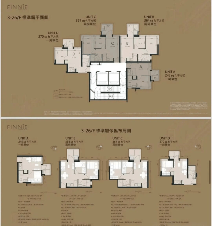 标准单位:约250-370平方呎