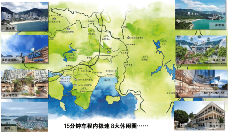 •15分钟车程极速抵达八大休闲圈:浅水湾、深水湾、海洋公园、浅水湾商场、浅水湾酒店、The Southside、南朗山、赤柱商场