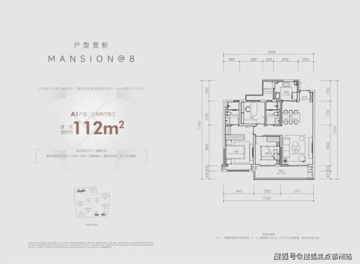 建面约112方三房两卫: