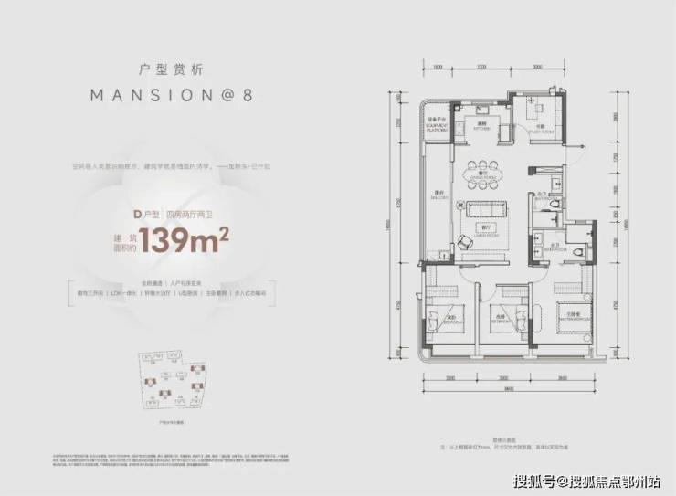 建面约139方四房两卫: