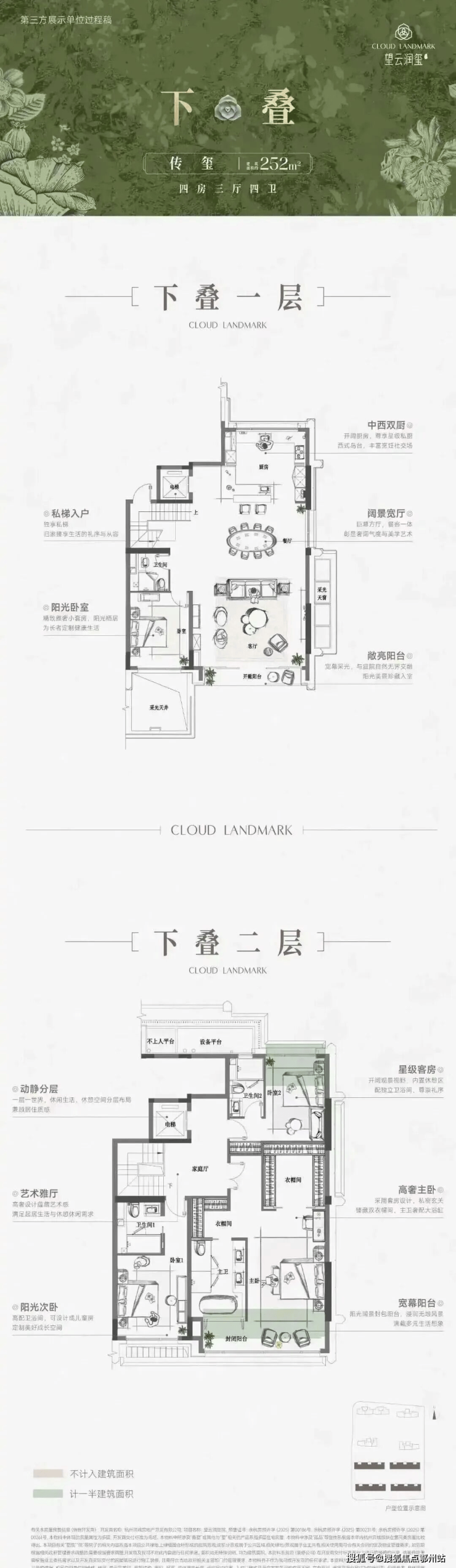 在产品形态上,望云润玺院打出了新玩法,即 建面约260方中叠,不仅也有独立入户庭院,私密感十足,还有一个挑高约6米的地下室,面积约35-40方 ,创新属性拉满,在杭州很少见。