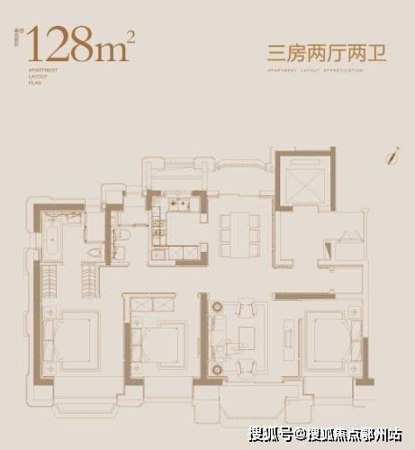 华发公馆推出房源是 128套 建筑面积约 128平三房两厅两卫公寓