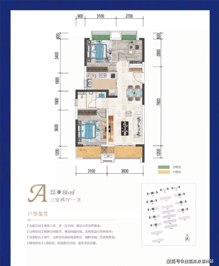 阳台半赠送、飘窗全赠送,更多赠送面积