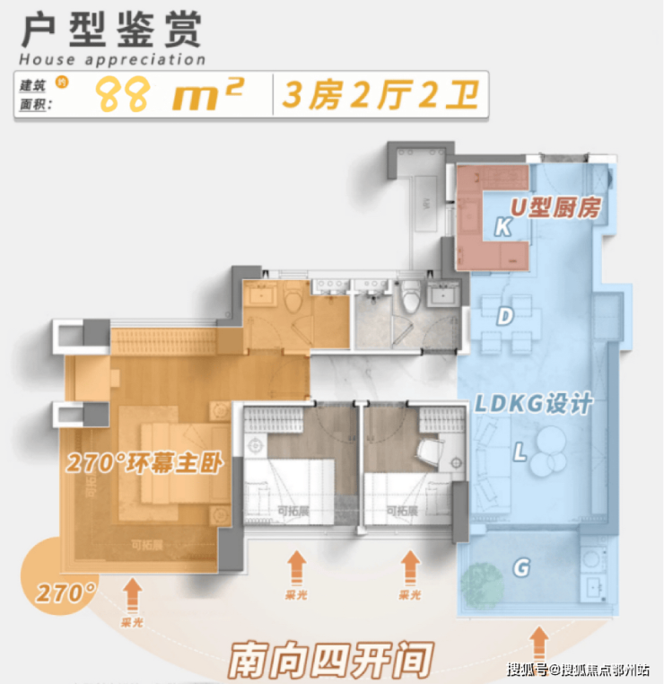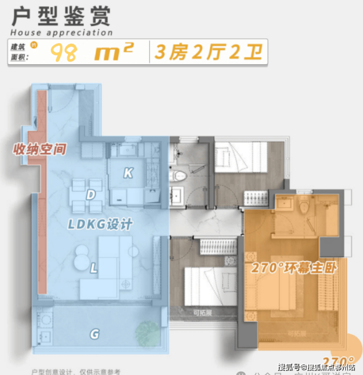 2梯5户,113㎡户型分布在北侧的2条梯腿,98㎡户型分布在东南侧梯腿,剩余2条梯腿则是88㎡户型。