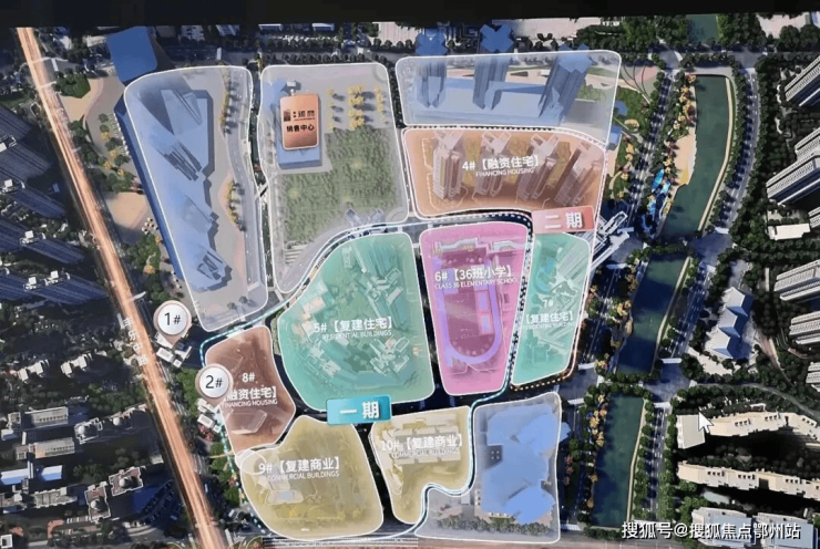 一共规划了7个地块,其中2个复建地块、2个融资地块、2个商业地块+1个学校地块。