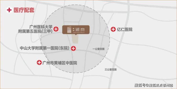 2所三甲医院:中大附属第一医院(三甲)约500米,广医大附属第五医院(三甲)约1.2KM。